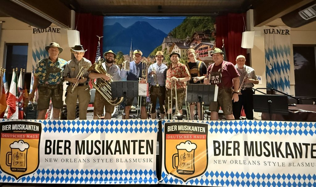 The Bier Musikanten is a New Orleans style brass band founded in 2020 by members of the Deutsches Haus and established in 2021 with their first appearance at Volksfest. The mission is to play German traditional, oompah, polka, pop, rock, Schlager music mixed with a funky brass sound to create a Gumbo that keeps our joint cultural heritage alive. In short, Blasmusik is to Germany what brass music is to New Orleans.